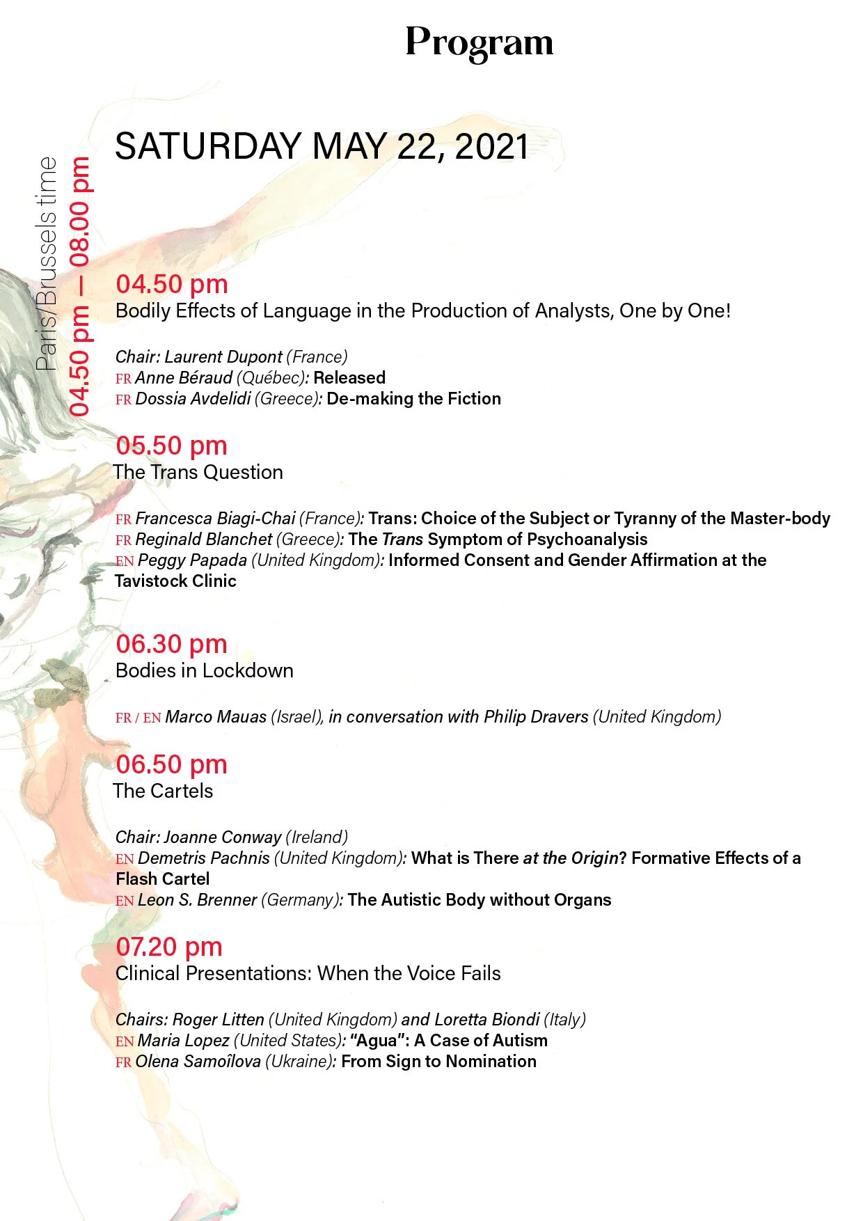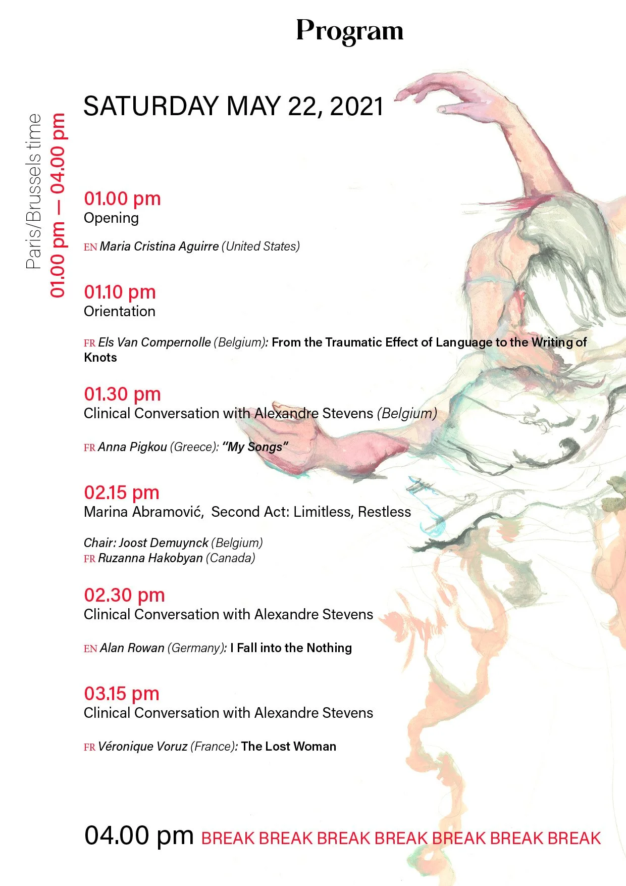 Saturday 22 May 1:30 pm - 4 pm Brussels / Paris